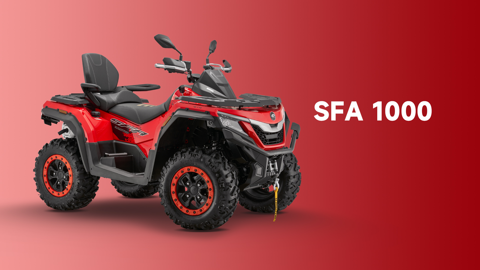 SFA 1000 je vlajková loď ATV řady společnosti QJMOTOR. Jedná se o nadstandardně vybavený model s výkonným dvouválcovým motorem do V o výkonu 87,5 HP, automatickou převodovkou CVT a uzávěrkou diferenciálu vpředu i vzadu. Tato čtyřkolka byla vytvořena, aby obstála i ve velmi obtížném terénu - tam kde ostatní zapadnou, jede SFA 1000 vesele dál! Tomu pomáhá nezávislé zavěšení kol, velmi odolné pneumatiky CST obuté na ráfcích typu "beadlock", velká světlá výška a samozřejmě nejmodernější elektronika a konektivita. Při navrhování této čtyřkolky se inženýři QJMOTOR inspirovali nejlepšími řešeními, která používá konkurence a vše optimalizovali a dále vylepšili pro dosažení nejlepších výsledků. Moderní a technologicky vyspělý SFA 1000 je tak velmi konkurenceschopný stroj v nabitém segmentu litrových čtyřkolek.