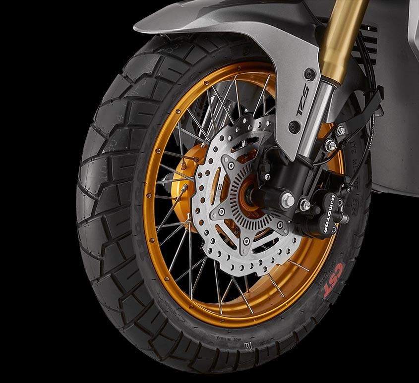 Pneumatiky CST, které se standardně montují na model ATR 125, jsou zvoleny přesně tak, aby doplňovaly charakter "adventure" skútru. Pneumatiky musí zvládnout jak čistý asfalt, tak i nezpevněný povrch.