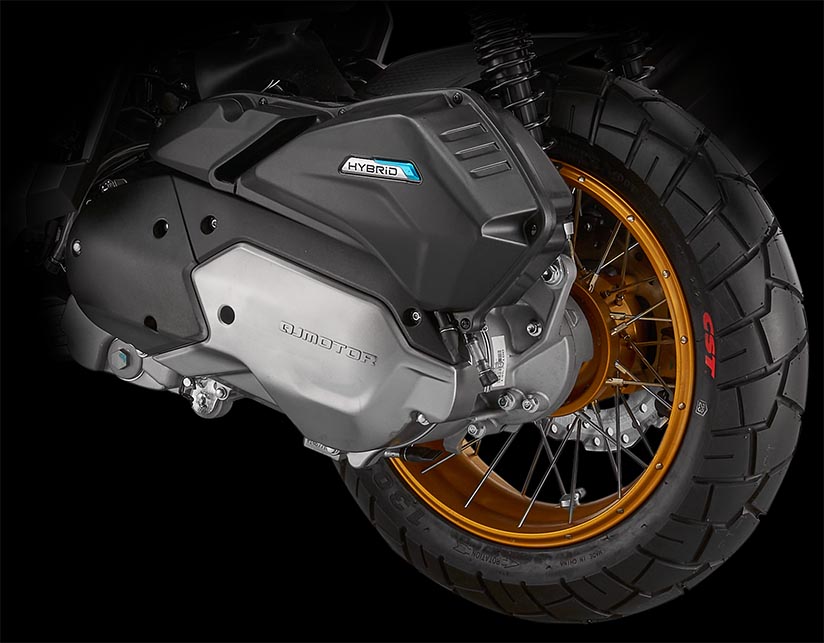 Hybridní technologie je výborná pro vysoký výkon, ale i hospodárnost. Jednoválcový čtyřtaktní, kapalinou chlazený motor poskytuje výkon 14,7 koní (celý systém rovných 15 koní) a točivý moment 12 Nm, což z něj činí jeden z nejvýkonnějších motorů v této kategorii, a zároveň si zachovává nízkou spotřebu paliva 2,3 l/100 km (dle normy WMTC3). Pohonná jedntoka též disponuje systémem start/stop, který eliminuje startér, jehož roli hraje generátor. Tímto způsobem se motor okamžitě a tiše nastartuje, a také se sníží počet pohyblivých částí. Prostřednictvím hybridní technologie nabízí ATR125 lepší výkony při akceleraci. Kontrola trakce je standardní výbavou a lze ji aktivovat/deaktivovat prostřednictvím nabídky na TFT panelu.