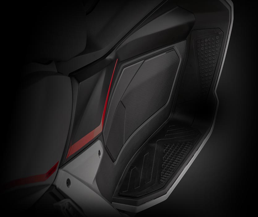 Design a konstrukce ATR 125 vytváří pohodlnou a relaxační jízdní pozici s přirozenou polohou stupaček pro nohy jezdce i spolujezdce s velkým okolním prostorem, což zajišťuje maximální pohodlí, ale také nabízí možnost umístění chodidel jezdce ve dvou polohách! (vertikální a horizontální).