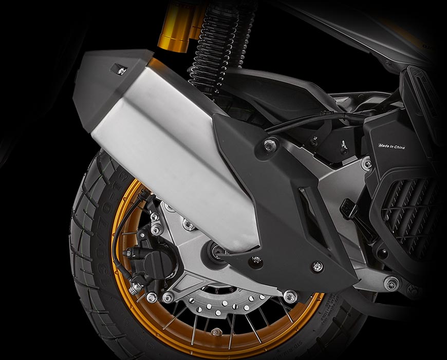 Koncovka výfuku kopíruje designové linie celého skútru a přispívá k dynamickému charakteru ATR125. Navíc má i krásný zvuk, na který budete hrdí!