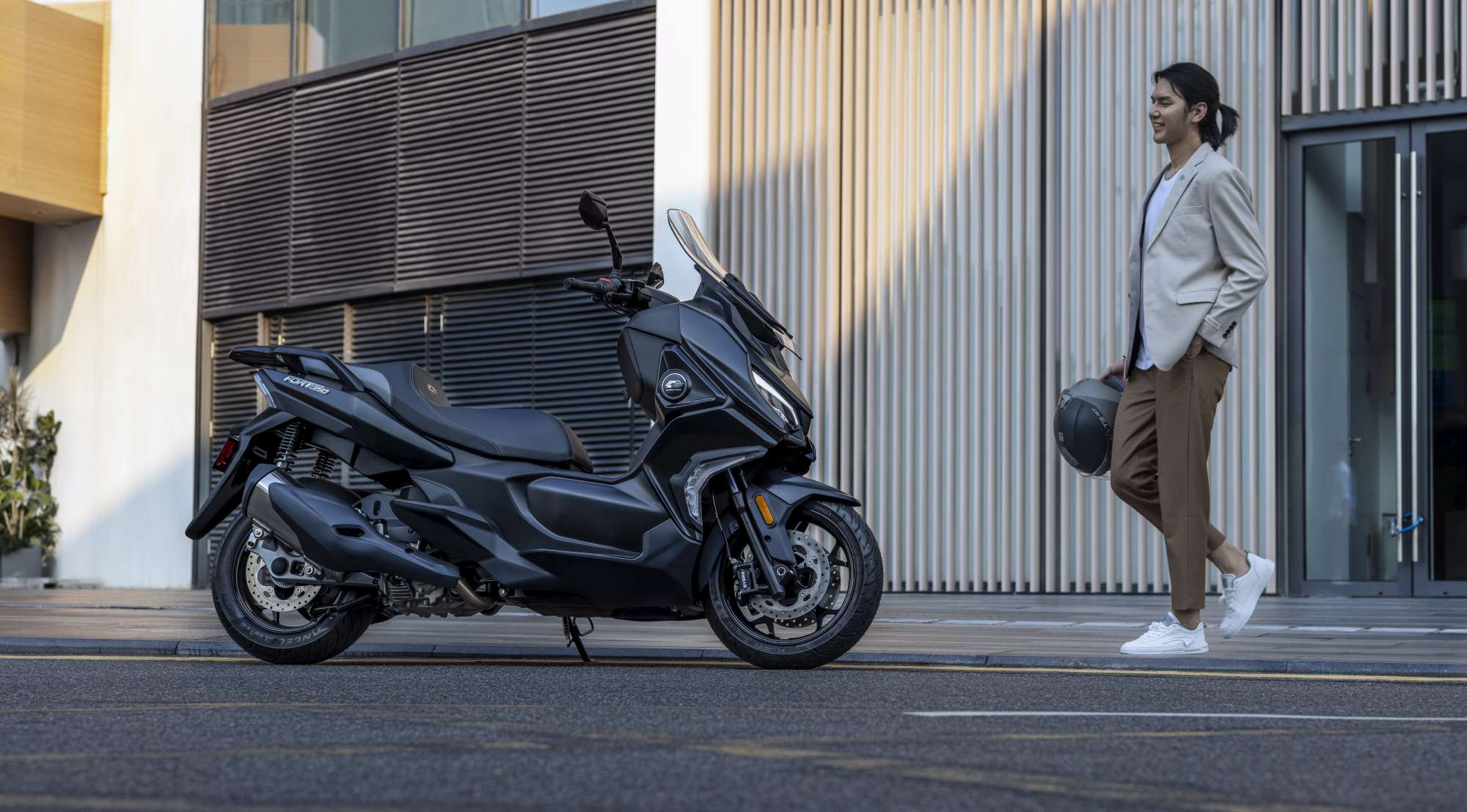 Krásné dynamické linie Fortu 350 definují jeho osobnost, vytvářejí atraktivní vzhled a zároveň tvoří vrstvený design, který upoutá pozornost okolí. Dvojité přední LED světlomety dodávají Fortu 350 výrazný a osobitý vzhled. Jízda v noci bude díky LED osvětlení příjemným zážitkem a můžete se spolehnout, že i Vy budete dobře viditelní pro své okolí v jakémkoliv provozu.